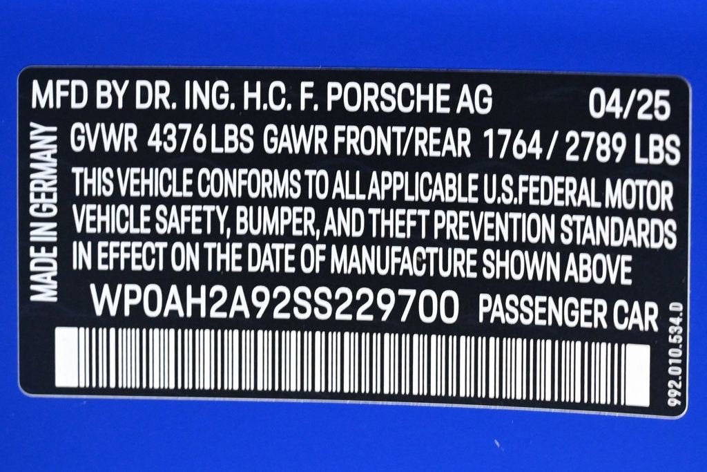 Air Conditioning, Climate Control, Dual Zone Climate Control, Cruise Control, Power Steering, Power Windows, Power Mirrors, Leather Steering Wheel, Leather Shifter, Power Drivers Seat, Power Passenger Seat, Memory Seat Position, Phone, Clock, Tachometer, Digital Info Center, Homelink System, Tilt Steering Wheel, Telescoping Steering Wheel, Steering Wheel Radio Controls, Sunroof, Driver Airbag, Passenger Airbag, Side Airbags, Keyless Entry, Security System, ABS Brakes, Traction Control, Dynamic Stability, Rear Defogger, Fog Lights, Intermittent Wipers, AM/FM, Alloy Wheels, Leather Interior Surface, , Leather Seat Trim with Leather Package, Premium Package with Remote ParkAssist, Sound Package Plus, Sport Chrono Package, 8 Speakers, Burmester High-End Surround Sound System, Radio data system, Automatic temperature control, Ionizer, Porsche Communication Management, Power driver seat, Adaptive suspension, Four wheel independent suspension, Front Axle Lift System, Heated GT Sport Steering Wheel in Leather (2PJ), 4-Wheel Disc Brakes, Dual front impact airbags, Dual front side impact airbags, Emergency communication system, Front anti-roll bar, Low tire pressure warning, Occupant sensing airbag, Overhead airbag, Rear anti-roll bar, Rear-Axle Steering, Brake assist, Exterior Parking Camera Rear, Delay-off headlights, Fully automatic headlights, Auto-dimming door mirrors, Bumpers: body-color, HD-Matrix Design LED Headlights, Heated door mirrors, PASM Sport Suspension (Lowered 10mm), Power door mirrors, Spoiler, 4-Way Sport Seats, Auto-dimming Rear-View mirror, Driver door bin, Driver vanity mirror, Front reading lights, Heated steering wheel, Illuminated entry, Night Vision Assist, Outside temperature display, Overhead console, Passenger vanity mirror, Remote ParkAssist, Sport steering wheel, Telescoping steering wheel, Front Center Armrest, Front Ventilated Seats, Heated front seats, Rear Seats, Sport Plus Seats, Passenger door bin, Storage Net in Passenger Footwell, Wheels Painted in Satin Dark Silver, Wheels: 20 Fr/21 Rr Carrera Exclusive Design, Wheels: 20 Front/21 Rear Carrera S, Rain sensing wipers, Passed Inspection, 360 Camera, Active Parking Assist, Adaptive Headlights, AndroidTM Auto/Apple Carplay, Automatic Headlights, Backup Camera, Blind-Spot Monitors, Bluetooth, Collision Warning Alert System, Heated/Cooled Seats, Lane Keeping Assist, Navigation, Touchscreen Controls, Voice Recognition, Wi-Fi Hotspot, ONLY 2, 809 MILES / 1 OWNER / FLORIDA GARAGED, SOLD NEW & FRESHLY INSPECTED & FULLY SERVICED @ THE COLLECTION PORSCHE, NICELY EQUIPPED WITH MANY PORSCHE FACTORY ORDERED OPTIONS., INCLUDES DEALER INSTALLED FULL FRONT CLEAR PAINT PROTECTION FILM. (PPF) Adaptive headlights, Aux. Audio Input, Bluetooth, Carpeted Floor Mats, Center Arm Rest, Cup Holders, Daytime Running Lights, Front Heated Seats, Heated Mirrors, Navigation System, Overhead Console, Parking Sensors, PCM, Rear Fog Lamps, Rear Spoiler, Rear Spoiler, Reverse Camera, Roll Stability Control, Side Curtain Airbags, Sport Seats, Tire Pressure Monitor, Vanity Mirrors - Contact THE COLLECTION GENERAL at 786-349-9658 or GENERAL@THECOLLECTION.COM for more information. -