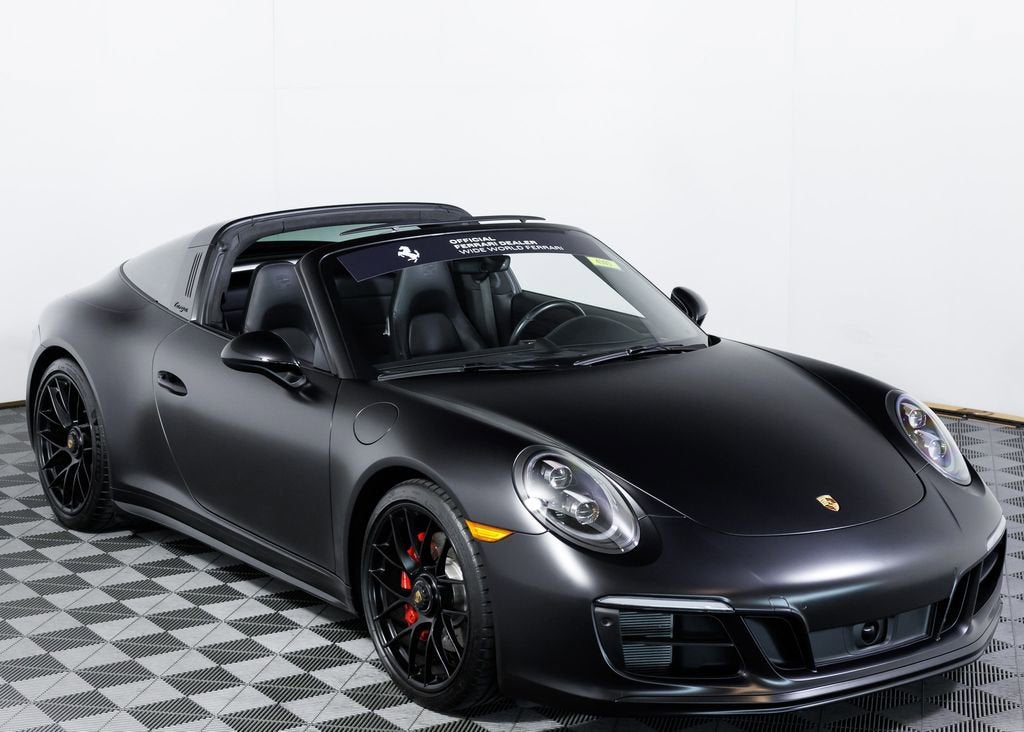 SALE PENDING! Wide World Ferrari is proud to present this exceptional 2019 Porsche 911 Targa 4 GTS, a beautifully specified example showing just 10,751 miles and accompanied by a clean Carfax. Blending the unmistakable character of the 911 with the open-air versatility of the Targa design, this GTS delivers an engaging driving experience paired with everyday usability and timeless style. Finished in sleek Jet Black Metallic and protected by stealth paint protection film, this Targa 4 GTS offers a striking, satin-like presence that enhances its sculpted lines while preserving the integrity of the finish. The deletion of the GTS door decals lends to a more understated aesthetic, while the SportDesign Package, exterior color-matched rear lid slats, and painted side skirts create a cohesive and purposeful look. LED headlights in Black with Porsche Dynamic Light System Plus (PDLS+) and the Light Design Package further elevate both form and function. Powered by Porsches twin-turbocharged flat-six engine and paired with the lightning-fast PDK transmission, this GTS offers seamless acceleration and precision performance. The addition of Power Steering Plus and a front axle lift system enhances drivability in a variety of conditions, making this example equally suited for spirited drives and daily use. Inside, the cabin is appointed with a full Black leather interior, combining sport-focused ergonomics with refined comfort. The 14-way Power Sport Seats are complemented by both heating and ventilation, ensuring year-round enjoyment. A heated multifunction leather steering wheel, Porsche Crest headrests, and illuminated carbon fiber door sill guards add thoughtful, premium touches throughout. Technology and convenience are equally well represented, with the Premium Package Plus, Porsche Entry & Drive, BOSE Surround Sound System, Adaptive Cruise Control, and Lane Change Assist all contributing to a well-rounded driving environment that prioritizes both performance and comfort. As the only 4-Time Cavallino Winning Ferrari Center in the tri-state area and one of the first Ferrari Centers in North America, we pride ourselves on exceptional service. We assist with all aspects of your purchase, including trade-ins, shipping, registration, non-reported financing, and customizations. Conveniently located in Rockland County, just under 30 miles from Manhattan. For more information, email us at ferrarivip@newcountry.com or call 845-682-0129.