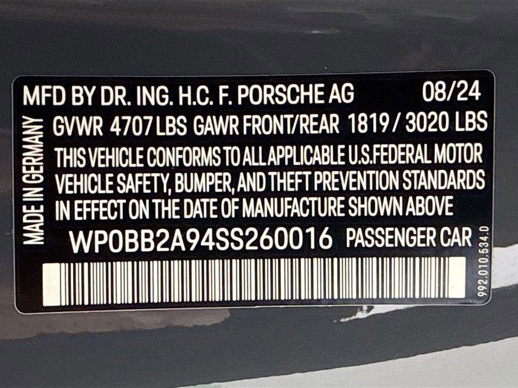 VERY LOW MILES! At just 2212 miles, this 2025 Porsche provides great value. KEY FEATURES AND OPTIONS Comes equipped with: Air Conditioning, MP3, Front Heated Seats. This Porsche 911 also includes Power Driver's Seat, Clock, Climate Control, Power Passenger Seat, Tachometer, Multi-Zone Climate Control, Digital Info Center, Cruise Control, Homelink System, Tilt Steering Wheel, Power Steering, Telescoping Steering Wheel, Power Windows, Steering Radio Controls, Power Mirrors, Driver Airbag, ABS Brakes, Fog Lights, Passenger Airbag, Traction Control, Intermittent Wipers, Side Airbags, Dynamic Stability, Keyless Entry, Rear Defogger, Security System, AM/FM, Rear Spoiler, Sport Seats, Center Arm Rest, Cup Holders, Vanity Mirrors, Heated Mirrors, Rear Fog Lamps, Daytime Running Lights, Parking Sensors, Reverse Camera, Side Curtain Airbags, Roll Stability Control, PCM, Adaptive headlights, Tire Pressure Monitor, Carpeted Floor Mats, Overhead Console, Aux. Audio Input, HD Radio. Air Conditioning, Climate Control, Dual Zone Climate Control, Cruise Control, Power Steering, Power Windows, Power Mirrors, Power Drivers Seat, Power Passenger Seat, Clock, Tachometer, Digital Info Center, Homelink System, Tilt Steering Wheel, Telescoping Steering Wheel, Steering Wheel Radio Controls, Driver Airbag, Passenger Airbag, Side Airbags, Keyless Entry, Security System, ABS Brakes, Traction Control, Dynamic Stability, Rear Defogger, Fog Lights, Intermittent Wipers, AM/FM, Alloy Wheels, Leather Interior Surface, Navigation system: Porsche Communication Management (PCM), 18-Way Adaptive Sport Seats Plus with Memory Package, 930 Leather Package, Extended Dashboard and Door Panel Package in Leather, Exterior Package in High Gloss Black, Premium Package with Remote ParkAssist, Sound Package Plus, 8 Speakers, Burmester High-End Surround Sound System, Radio data system, Automatic temperature control, Ionizer, Porsche Communication Management, Power driver seat, Adaptive suspension, Four wheel independent suspension, Front Axle Lift System, 4-Wheel Disc Brakes, Dual front impact airbags, Dual front side impact airbags, Emergency communication system, Front anti-roll bar, Integrated roll-over protection, Low tire pressure warning, Occupant sensing airbag, Overhead airbag, Rear anti-roll bar, Brake assist, Exterior Parking Camera Rear, Auto High-beam Headlights, Delay-off headlights, Fully automatic headlights, Auto-dimming door mirrors, Bumpers: body-color, Exclusive Design Taillights, HD-Matrix Design LED Headlights in Black, Heated door mirrors, Power door mirrors, Spoiler, 4-Way Sport Seats Plus, Auto-dimming Rear-View mirror, Convertible roof lining, Driver door bin, Driver vanity mirror, Front reading lights, Heated steering wheel, Illuminated entry, Night Vision Assist, Outside temperature display, Overhead console, Passenger vanity mirror, Power convertible roof, Remote ParkAssist, Sport steering wheel, Telescoping steering wheel, Under Door Puddle Light Projectors, Vehicle Keys in Leather with 1 Key Pouch in Leather, Front Center Armrest, Front Ventilated Seats, Heated front seats, Leather/Race-Tex Seat Trim, Sport Plus Seats, Passenger door bin, Storage Net in Passenger Footwell, Wheels: 20 Front/21 Rear Carrera GTS, Glass rear window, Rain sensing wipers Adaptive headlights, Aux. Audio Input, Carpeted Floor Mats, Center Arm Rest, Cup Holders, Daytime Running Lights, Front Heated Seats, Heated Mirrors, Overhead Console, Parking Sensors, PCM, Rear Fog Lamps, Rear Spoiler, Rear Spoiler, Reverse Camera, Roll Stability Control, Side Curtain Airbags, Sport Seats, Tire Pressure Monitor, Vanity Mirrors - Contact Alvaro Uribe at 786-628-7606 or auribe@ferrariofmiami.com for more information. -