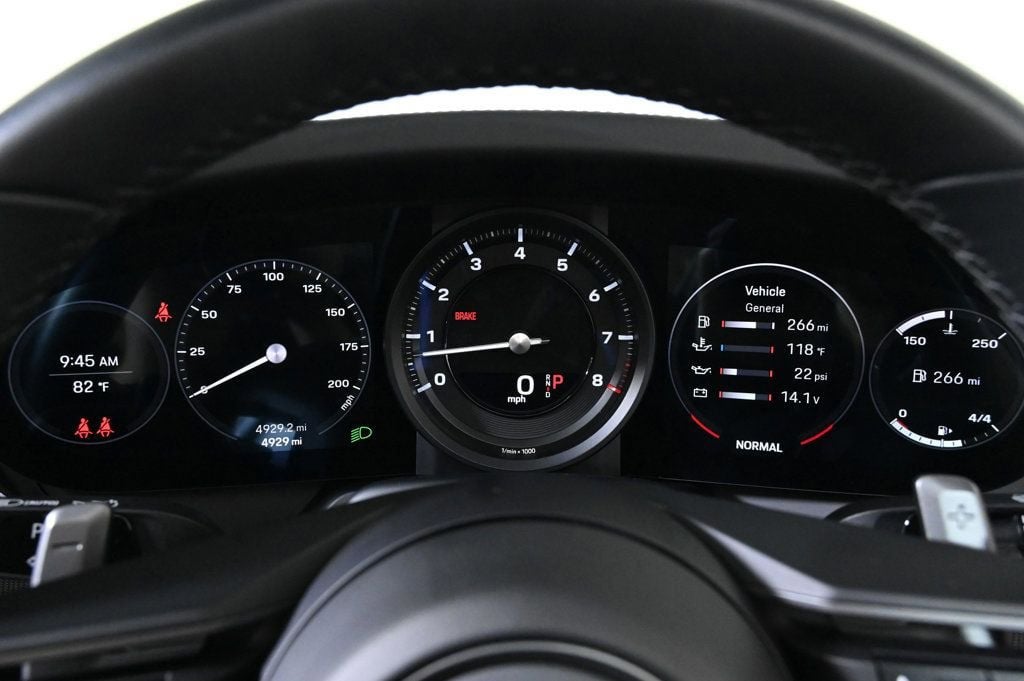 - Transferable Warranty Air Conditioning, Climate Control, Dual Zone Climate Control, Cruise Control, Power Steering, Power Windows, Power Mirrors, Leather Steering Wheel, Leather Shifter, Power Drivers Seat, Power Passenger Seat, Phone, Clock, Tachometer, Digital Info Center, Homelink System, Tilt Steering Wheel, Telescoping Steering Wheel, Steering Wheel Radio Controls, Driver Airbag, Passenger Airbag, Side Airbags, Keyless Entry, Security System, ABS Brakes, Traction Control, Dynamic Stability, Rear Defogger, Fog Lights, Intermittent Wipers, AM/FM, Alloy Wheels, Leather Interior Surface, Navigation System, Navigation system: Porsche Communication Management (PCM), Premium Package, Sound Package Plus, Storage Package, 8 Speakers, Radio data system, Automatic temperature control, Porsche Communication Management, Power driver seat, Adaptive suspension, Four wheel independent suspension, 4-Wheel Disc Brakes, Dual front impact airbags, Dual front side impact airbags, Front anti-roll bar, Integrated roll-over protection, Low tire pressure warning, Occupant sensing airbag, Overhead airbag, Rear anti-roll bar, Brake assist, Exterior Parking Camera Rear, Delay-off headlights, Fully automatic headlights, Auto-dimming door mirrors, Bumpers: body-color, Exterior Mirror Lower Trim & Base in Ext Color, Heated door mirrors, Porsche Dynamic Light System Plus (PDLS+), Power door mirrors, Power Folding Exterior Mirrors, Spoiler, SportDesign Side Skirts, 4-Way Sport Seats, Ambient Lighting, Auto-dimming Rear-View mirror, Convertible roof lining, Driver door bin, Driver vanity mirror, Front reading lights, Illuminated entry, Lane Change Assist (LCA), Outside temperature display, Overhead console, Passenger vanity mirror, Power convertible roof, Sport steering wheel, Surround View, Telescoping steering wheel, Front Center Armrest, Front Ventilated Seats, Heated front seats, Leather Seat Trim, Split folding rear seat, Sport Plus Seats, Passenger door bin, Wheels: 20 Front/21 Rear RS Spyder Design, Glass rear window, Rain sensing wipers, Recent Oil Change, Passed Inspection, Adaptive Headlights, Automatic Headlights, Backup Camera, Bluetooth, Heated/Cooled Seats, Navigation, Touchscreen Controls, Voice Recognition, Wi-Fi Hotspot, FRESHLY SERVICED @ THE PORSCHE COLLECTION Adaptive headlights, Aux. Audio Input, Bluetooth, Carpeted Floor Mats, Center Arm Rest, Cup Holders, Daytime Running Lights, Front Heated Seats, Heated Mirrors, Navigation System, Overhead Console, Parking Sensors, PCM, Rear Fog Lamps, Rear Spoiler, Rear Spoiler, Reverse Camera, Roll Stability Control, Side Curtain Airbags, Sport Seats, Tire Pressure Monitor, Vanity Mirrors - Contact Alvaro Uribe at 786-628-7606 or auribe@ferrariofmiami.com for more information. -