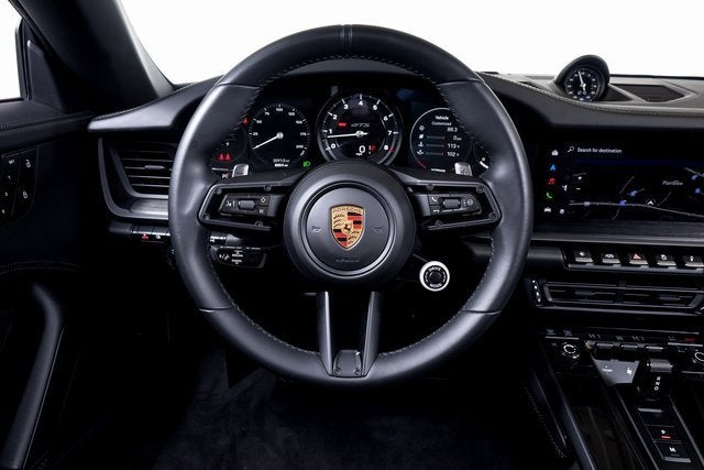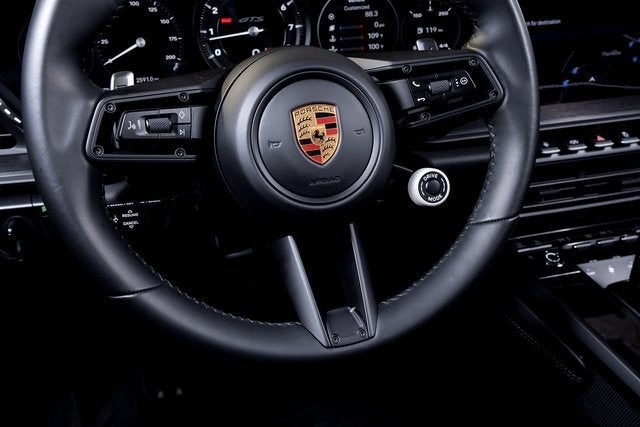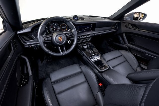Ferrari of Long Island is proud to present this exceptional Porsche 911 Carrera GTS Cabriolet, finished in sophisticated Arctic Grey over a Black leather interior. With an original MSRP of $178,270, this GTS Cabriolet is meticulously specified to deliver open-air exhilaration with unmistakable Porsche precision. At its core, the 911 Carrera GTS Cabriolet blends twin-turbocharged performance with razor-sharp dynamics. Power Steering Plus enhances low-speed maneuverability without sacrificing high-speed feedback, while the Front Axle Lift System provides added practicality when navigating varying road conditions. LED-Matrix Design headlights in black with Porsche Dynamic Light System Plus (PDLS+) deliver exceptional illumination and adaptive cornering capability, reinforcing the cars performance intent. Lane Change Assist further supports confident highway driving. Inside, the cabin reflects the GTSs dual character, track-focused yet luxuriously appointed. Adaptive Sport Seats Plus (18-way) with memory package provide exceptional lateral support and personalized comfort, complemented by ventilated front seats and a heated GT Sport steering wheel in leather for year-round enjoyment. Ambient lighting adds subtle refinement, while the Premium Package enhances the overall driving experience with a thoughtful suite of comfort and convenience features. Technology and usability are seamlessly integrated, with Surround View offering enhanced visibility during low-speed maneuvering and power folding exterior mirrors adding everyday practicality. A BOSE Surround Sound System provides premium audio clarity, while the Storage Package increases versatility. Exterior details such as mirror bases finished in body color, under-door puddle light projectors, and an Exclusive Design fuel cap add distinctive touches that elevate the overall presentation. Please contact us for more information or to schedule a viewing of this beautifully specified Porsche 911 Carrera GTS Cabriolet.