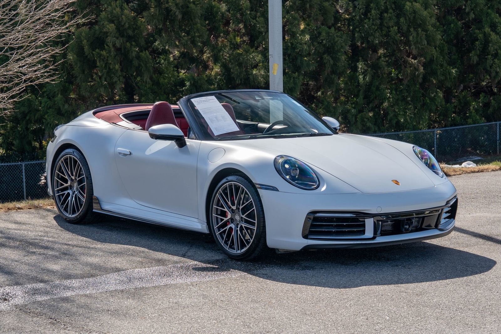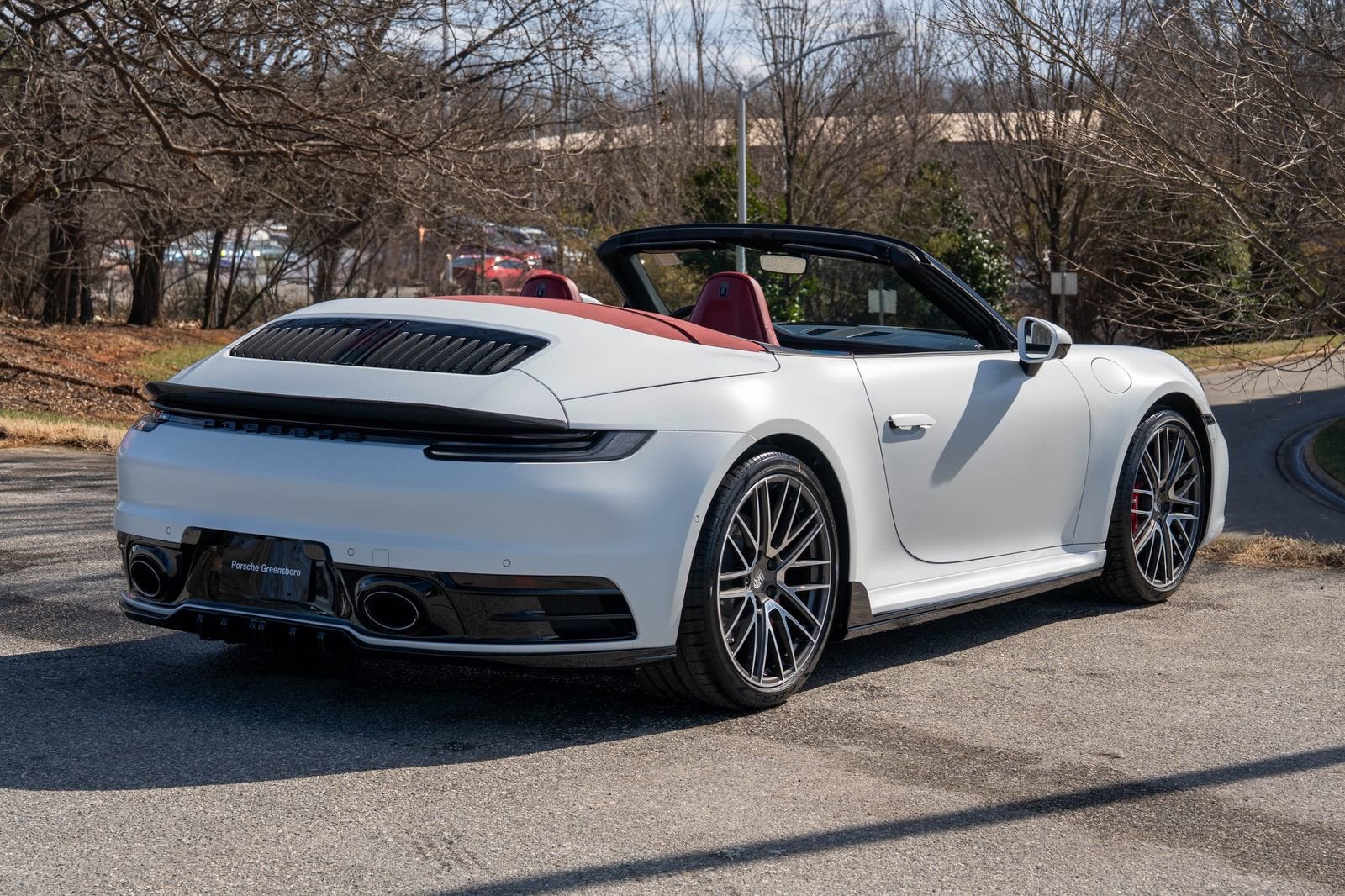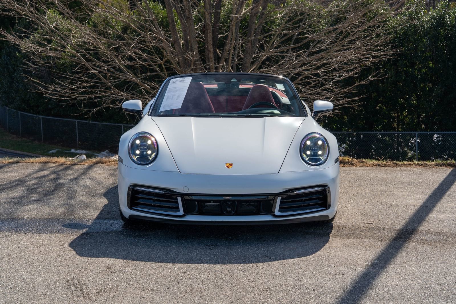 Porsche Certified! 2022 Porsche 911 Carrera S, Clean Carfax! 8k miles! Original MSRP:$155950, Warranty Start: 01-05-2022, Transmission: PDK (Automatic), Engine: 3.0L H6 Turbocharged DOHC 24V LEV3-ULEV70 443hp, Exterior Color: Carrara White Metallic, Interior Color: Leather Interior in Black/Bordeaux Red, Top Color: Cabriolet Roof in Red, Optional Equipment w/Option Code & Description- 992320 911 Carrera S Cabriolet (MY22) $129,900, BN Leather Interior in Black/Bordeaux Red $4,260, 2Y Carrara White Metallic $840, P3W Premium Package with Remote ParkAssist $6,950, 6XV Power Folding Exterior Mirrors, QQ2 Ambient Lighting, 4D3 Ventilated Seats (Front), QE1 Storage Package, 9VL BOSE Surround Sound System, 8IS Porsche Dynamic Light System Plus (PDLS+), FT1 Remote ParkAssist incl. Lane Change Assist and 3D Surround View, UD1 Under Door Puddle Light Projectors $160, AMU Model Designation on Doors in Red $310, 0P9 Sport Exhaust System incl. Tailpipes in Black $2,950, 1N3 Power Steering Plus $280, 46L 20"/21" 911 Turbo Wheels $2,840, Q2J Power Sport Seats (14-way) with Memory Package $2,330, 2PJ Heated GT Sport Steering Wheel in Leather $590, 3J7 Porsche Crest on Headrests (Front) $290, VT2 Door-Sill Guards in Dark Silver Brushed Aluminum, Illuminated $900, 8T3 Adaptive Cruise Control (ACC) $2,000, For more information please contact Porsche Greensboro at 336-252-5588.