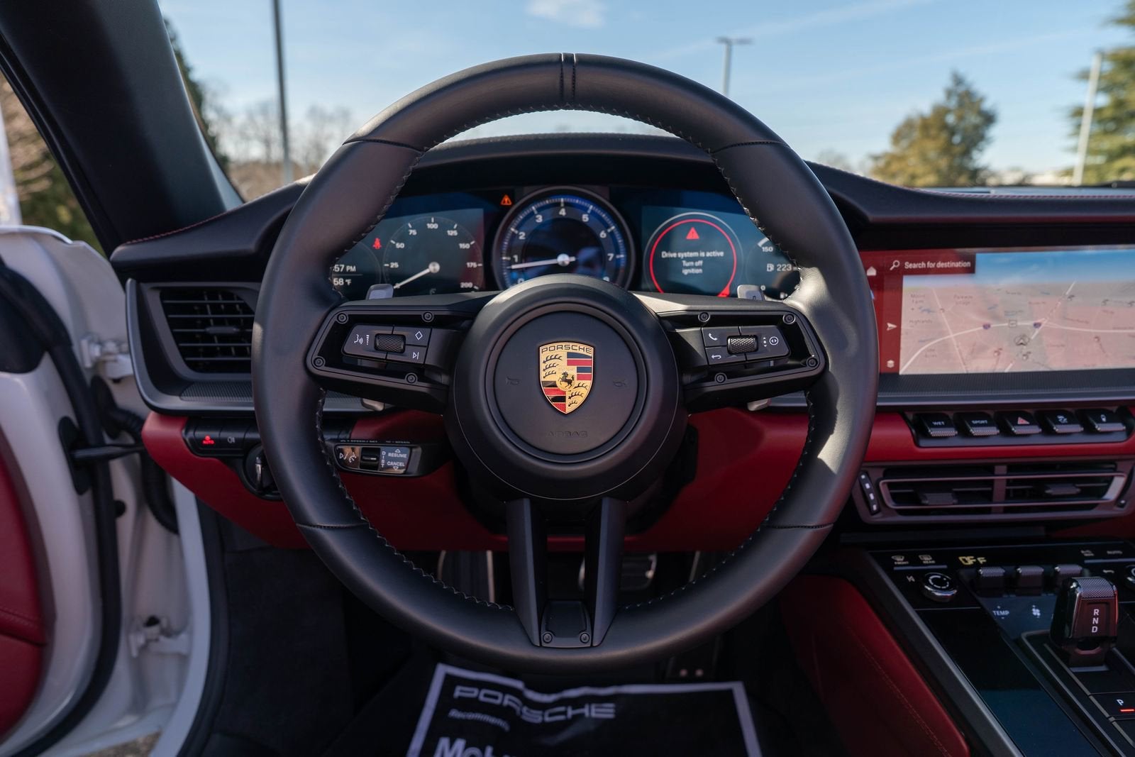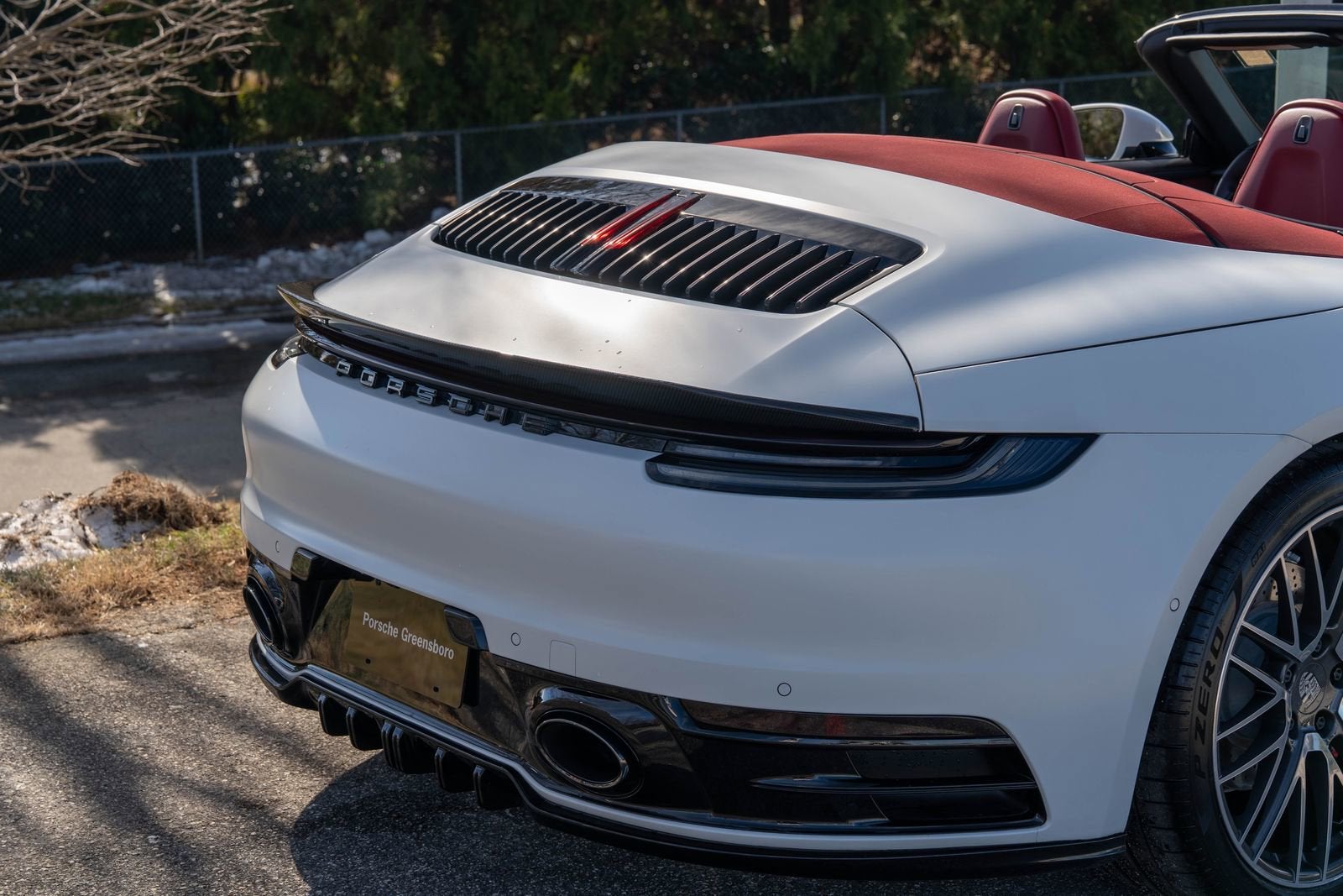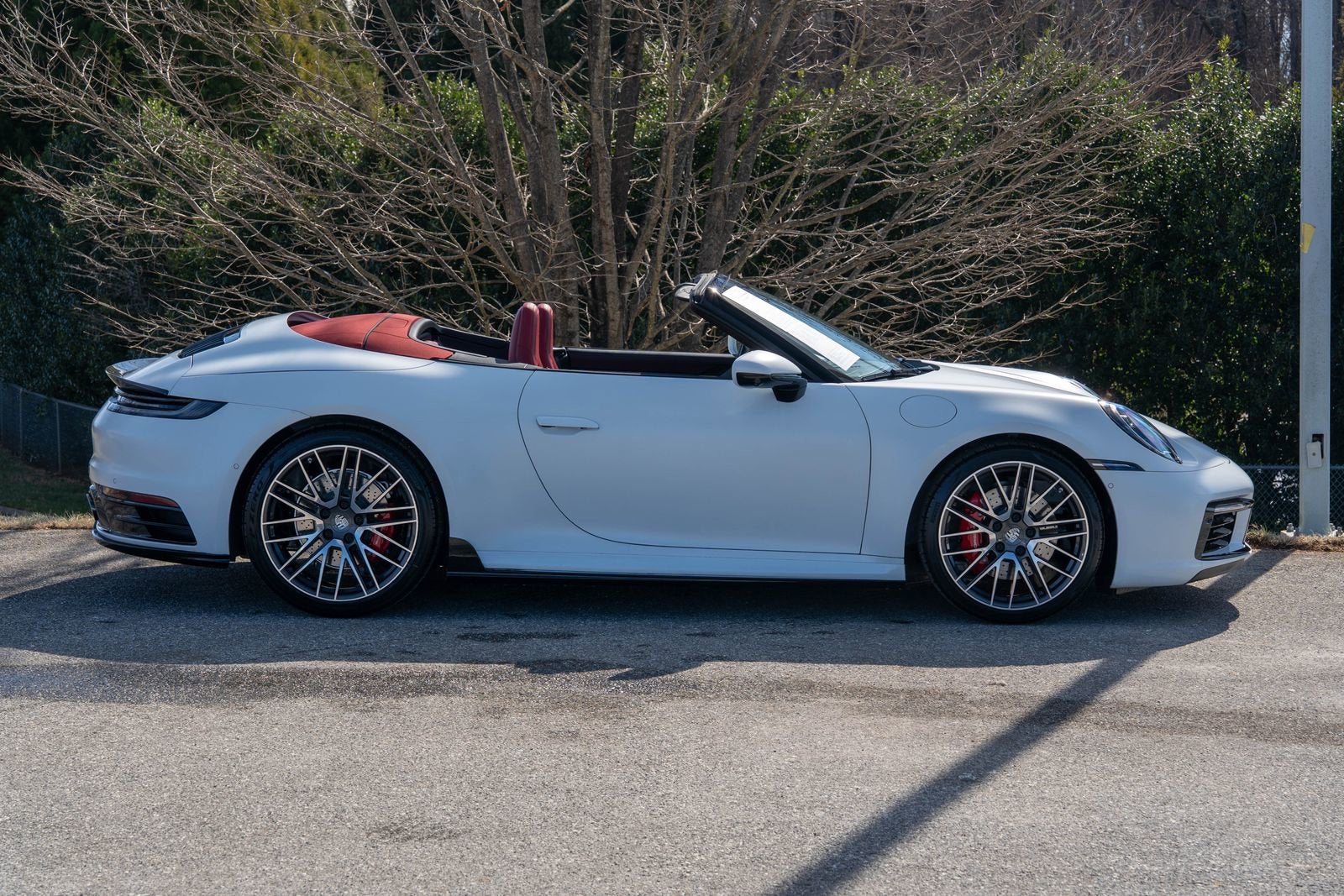 Porsche Certified! 2022 Porsche 911 Carrera S, Clean Carfax! 8k miles! Original MSRP:$155950, Warranty Start: 01-05-2022, Transmission: PDK (Automatic), Engine: 3.0L H6 Turbocharged DOHC 24V LEV3-ULEV70 443hp, Exterior Color: Carrara White Metallic, Interior Color: Leather Interior in Black/Bordeaux Red, Top Color: Cabriolet Roof in Red, Optional Equipment w/Option Code & Description- 992320 911 Carrera S Cabriolet (MY22) $129,900, BN Leather Interior in Black/Bordeaux Red $4,260, 2Y Carrara White Metallic $840, P3W Premium Package with Remote ParkAssist $6,950, 6XV Power Folding Exterior Mirrors, QQ2 Ambient Lighting, 4D3 Ventilated Seats (Front), QE1 Storage Package, 9VL BOSE Surround Sound System, 8IS Porsche Dynamic Light System Plus (PDLS+), FT1 Remote ParkAssist incl. Lane Change Assist and 3D Surround View, UD1 Under Door Puddle Light Projectors $160, AMU Model Designation on Doors in Red $310, 0P9 Sport Exhaust System incl. Tailpipes in Black $2,950, 1N3 Power Steering Plus $280, 46L 20"/21" 911 Turbo Wheels $2,840, Q2J Power Sport Seats (14-way) with Memory Package $2,330, 2PJ Heated GT Sport Steering Wheel in Leather $590, 3J7 Porsche Crest on Headrests (Front) $290, VT2 Door-Sill Guards in Dark Silver Brushed Aluminum, Illuminated $900, 8T3 Adaptive Cruise Control (ACC) $2,000, For more information please contact Porsche Greensboro at 336-252-5588.