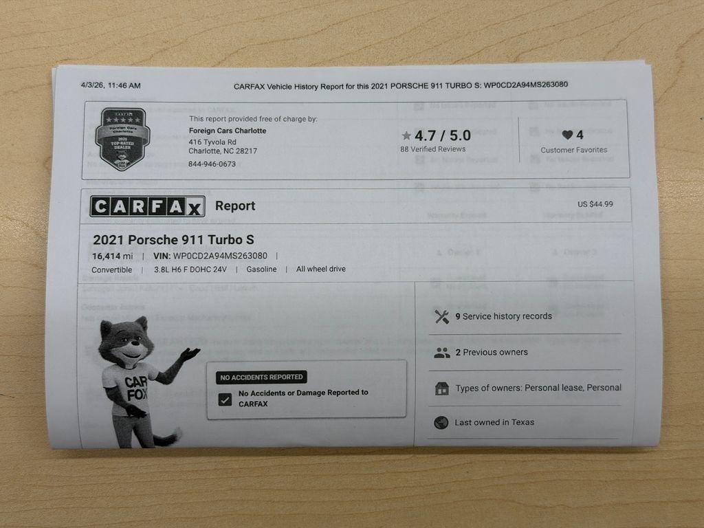 CENTER CONSOLE LID W/PORSCHE CREST, REAR SIDE AIR INTAKES IN EXTERIOR COLOR, POWER STEERING PLUS, LED-MATRIX DESIGN HEADLIGHTS IN BLACK W/PDLS+BLACK TOP IONIZER, CLEAR TAILLIGHTS PASM SPORT SUSPENSION (LOWERED 10MM) RR LID GRILLE VERTICAL SLAT INLAYS IN EXTERIOR COLOR, FRONT AXLE LIFT SYSTEM, UNDER DOOR, PUDDLE LIGHT PROJECTORS, BURMESTER HIGH-END SURROUND SOUND SYSTEM, PORSCHE INNODRIVE W/ACC SURROUND VIEW, LANE CHANGE ASSIST (LCA), INTERIOR TRIM INLAYS IN PALDAO, HEATED GT SPORT STEERING WHEEL VENTILATED FRONT SEATS, ICELAND GREEN/BLACK, LEATHER SEAT TRIM W/TWO-TONE LEATHER INTERIOR, BACKREST SHELLS IN LEATHER W/LEATHER INLAY 2021 Porsche 911 Turbo S PLEASE CALL (704)535-7100 TO VERIFY AVAILABILITY SAVE YOUR CASH & ASK ABOUT OUR LOW RATE FINANCING EXTENDED TERMS AVAILABLE TO QUALIFIED CLIENTELE. Clean CARFAX.