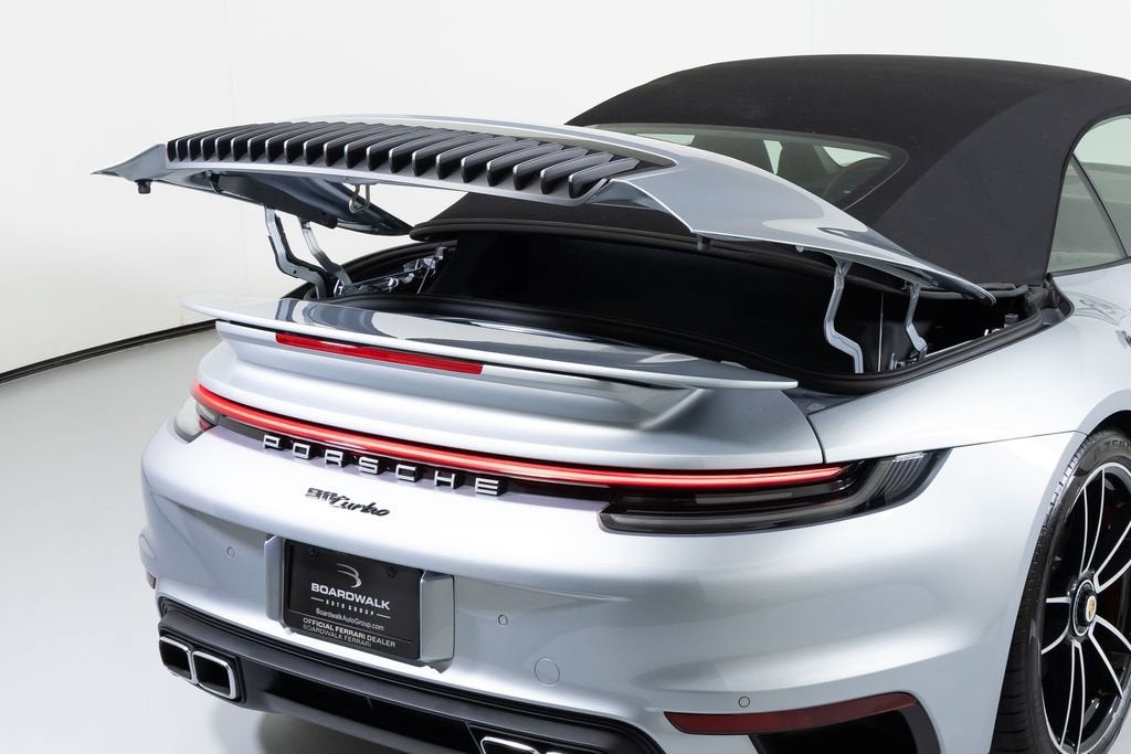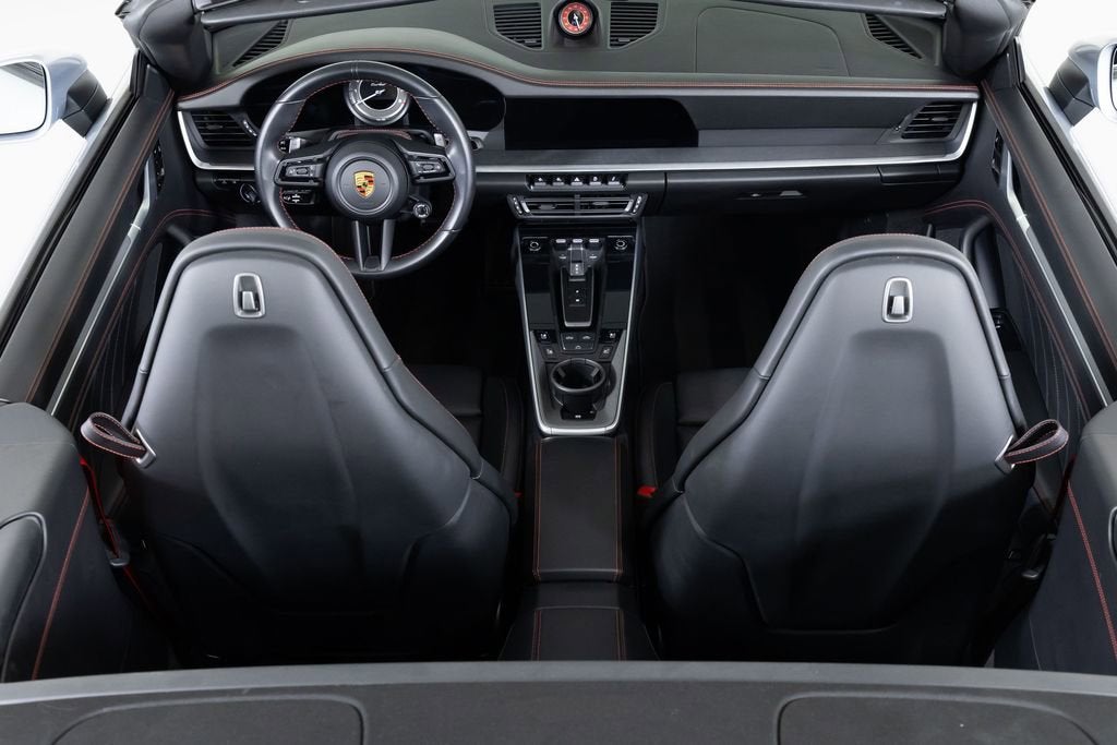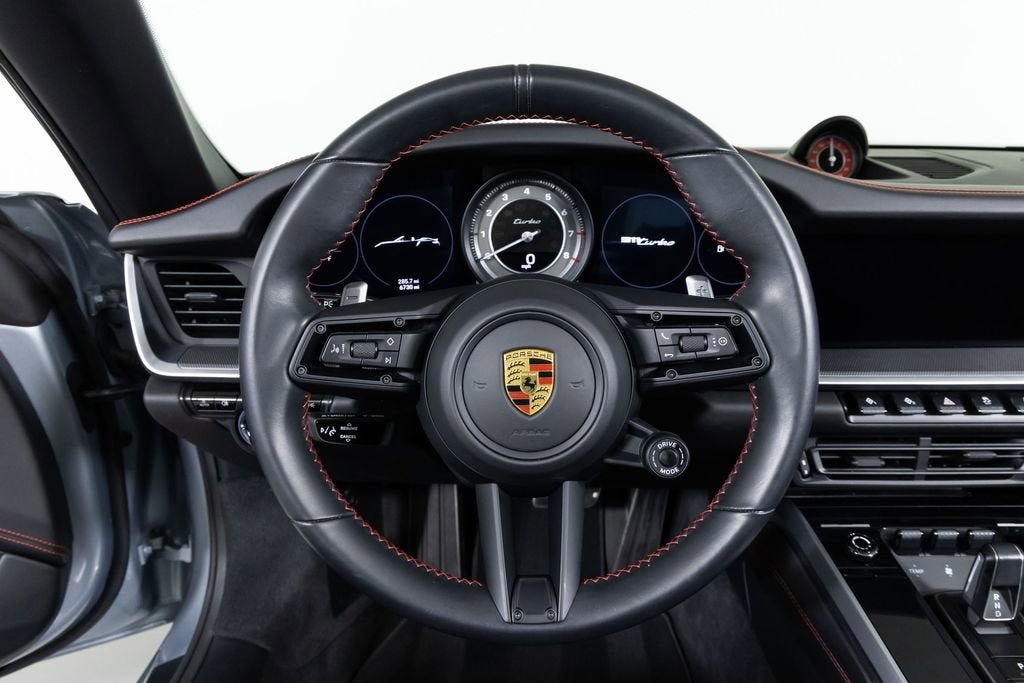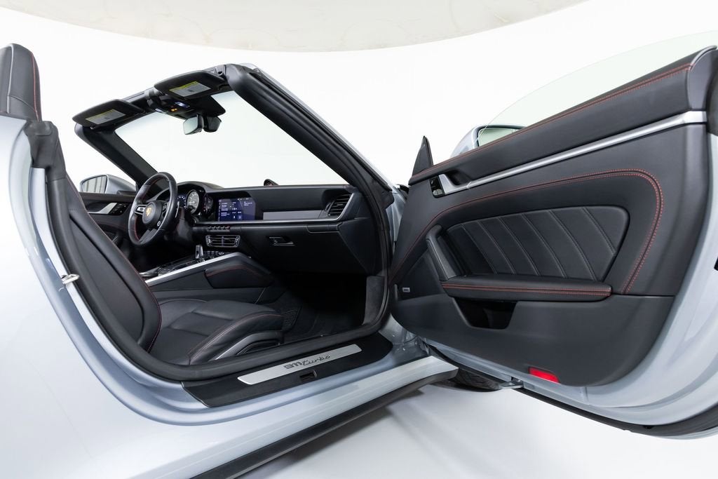 This 2021 Porsche 992 Turbo Cabriolet is one of just a handful of cars available. We know Porsche dealers are sold out for almost every 911 trim, but especially difficult are Turbos and GT3s. This one-owner car was well maintained and has less than 7,000 miles on the odometer. The original order is a great build with a lot of deviated stitching and touches of red throughout. Chrono dial and seat belts also both in red. Clean CARFAX; no issues. Exterior: Dolomite Silver Metallic Interior: Leather Interior in Black 911 Turbo Cabriolet Color Selection for Deviated Stitching 911 turbo Logo on Rear in High Gloss Black Power Steering Plus Dashboard with Deviated Stitching Preparation for Rear Side Panel with Deviated Stitching Center Console Lid with Deviated Stitching Knee Pad with Deviated Stitching Door Panel with Deviated Stitching Steering Column Casing in Leather i.c.w. Electric Steering Column Heated GT Sport Steering Wheel Fuel Cap with Aluminum Look Finish 20"/21" 911 Turbo S Wheels Ventilated Seats (Front) Rear Lid Grille Vertical Slat Inlays in Exterior Color Deviated Stitching Interior Package PDK Gear Selector in Aluminum Lane Change Assist (LCA) Smoking Package Seat belts in Guards Red Storage Package Ambient Lighting Rear Side Air Intakes in High Gloss Black Sport Chrono Stopwatch Dial in Guards Red Live outside of the Dallas/Fort Worth area? No Problem! Ferrari Dallas is willing to help you arrange shipping to anywhere in the country. We are also happy to pick you up from either of our local airports and bring you into the dealership to view the car you are most interested in. Choose from either Dallas Love Field (DAL) or Dallas/Fort Worth International Airport (DFW). DISCLAIMER: SALES TAX, TITLE FEE, LICENSE FEE, REGISTRATION FEE, DEALER DOCUMENTARY FEE, VEHICLE INVENTORY TAX, TEMPORARY TAG FEE, FINANCE CHARGES, EMISSION TESTING FEE AND COMPLIANCE FEE ARE ADDITIONAL TO THE ADVERTISED PRICE.