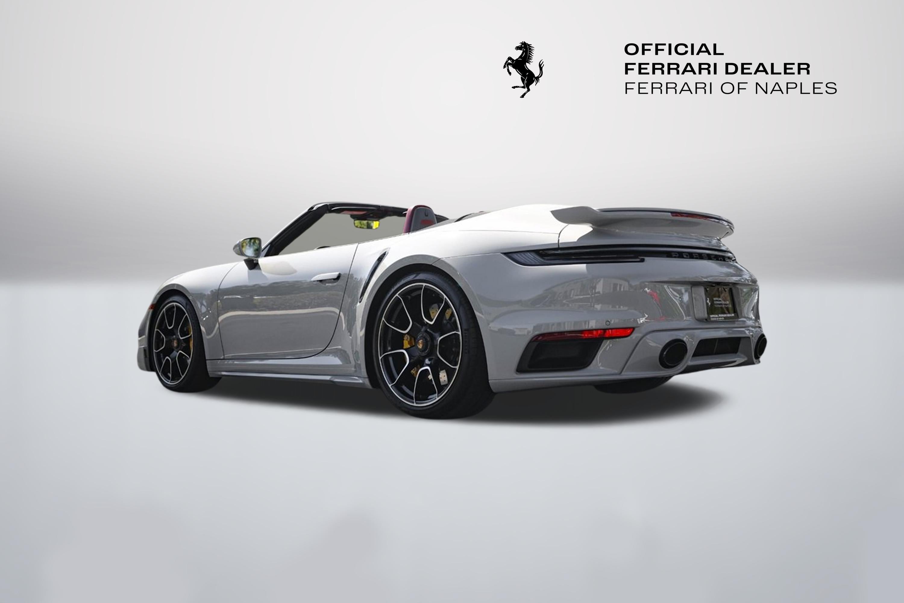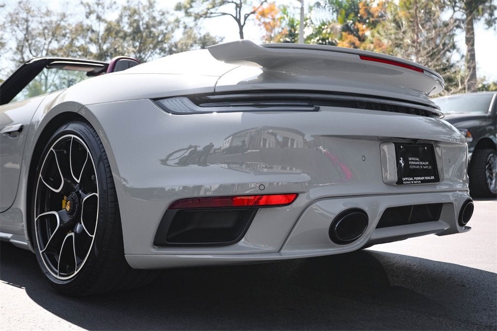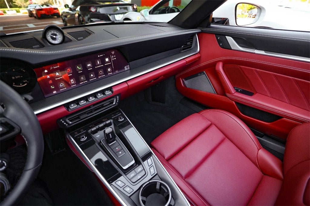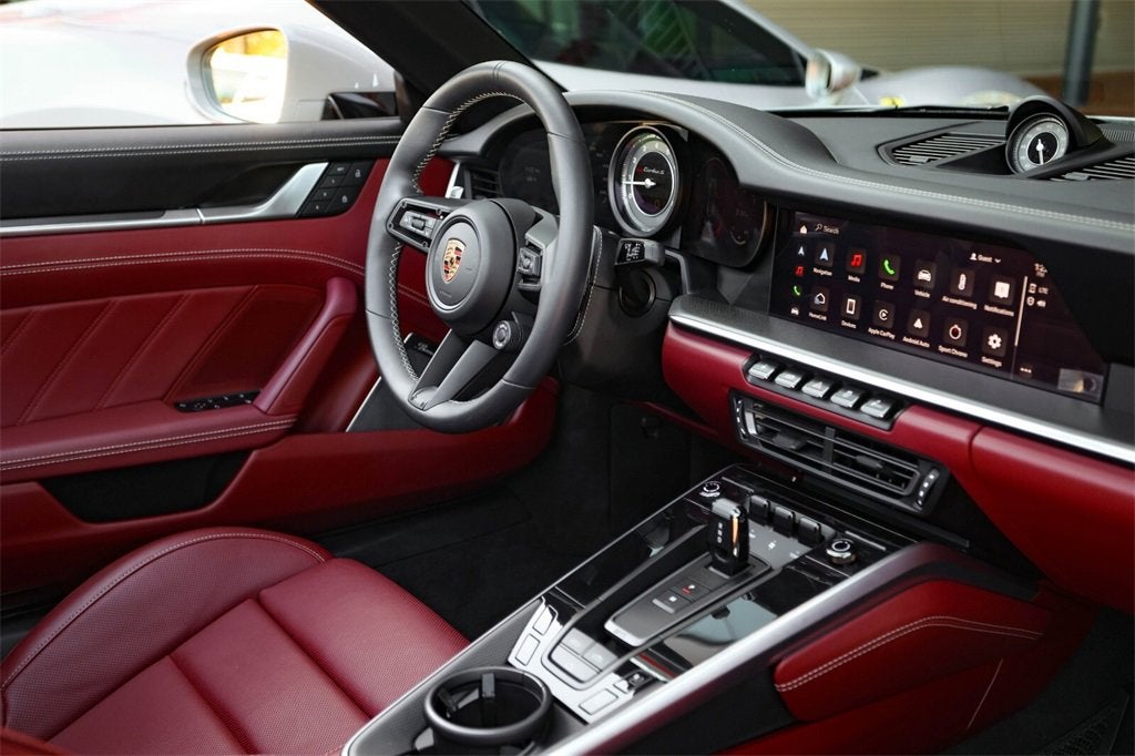 Ferrari of Naples is proud to present this exceptionally equipped 2025 Porsche 911 Turbo S Cabriolet, finished in Chalk over a luxurious Black and Bordeaux Red leather interior with a Black convertible roof. With just 4,612 miles, this beautifully specified example combines Porsches ultimate open-top performance with an extensive list of highly desirable factory options. With an original MSRP of $285,265, this Turbo S Cabriolet features the SportDesign Package, Burmester High-End Audio, Front Axle Lift, PASM Sport Suspension, and an extensive deviated stitching interior package, making it a truly exceptional and highly customized example. 911 Turbo SportDesign Package 20"/21" 911 Turbo S Exclusive Design Wheels Wheels Painted in High Gloss Black Rear Side Air Intakes in High Gloss Black Exterior Mirror Bases in High Gloss Black Rear Lid Grille Vertical Slat Inlays in High Gloss Black Model Designation and PORSCHE Logo in High Gloss Black Exclusive Design Fuel Cap Exclusive Design Taillights LED-Matrix Design Headlights in Black with PDLS+ Sport Exhaust System with Black Tailpipes Under Door Puddle Light Projectors Leather Interior in Black / Bordeaux Red Deviated Stitching Interior Package in Chalk Dashboard with Deviated Stitching Door Panels with Deviated Stitching Center Console Lid with Deviated Stitching Knee Pads with Deviated Stitching Rear Side Panels with Deviated Stitching Seat Belts in Chalk Heated GT Sport Steering Wheel in Leather Steering Column Casing in Leather Passenger Cupholder Trim in Leather Storage Package Burmester High-End Surround Sound System Lane Change Assist Ambient Lighting Ionizer Air Purification System Ventilated Front Seats Front Axle Lift System Power Steering Plus At Ferrari of Naples, we offer an exclusive selection of luxury and performance vehicles, backed by unparalleled customer service. Our team is dedicated to providing a seamless and personalized buying experience, ensuring that each vehicle meets the highest standards of quality and performance. Phone: (239) 256-1400 Email: smora@newcountry.com Address: 11291 Tamiami Trail N, Naples, FL 34110 Please call or email today to schedule your private viewing or request a personalized video tour of this exceptional 2025 Porsche 911 Turbo S Cabriolet.