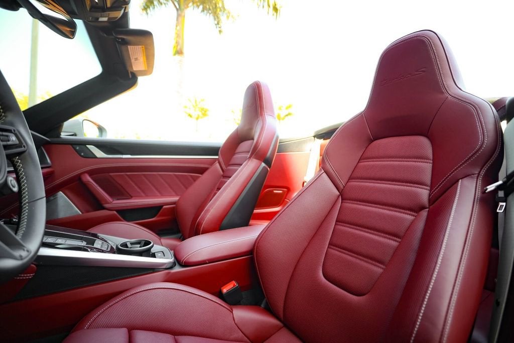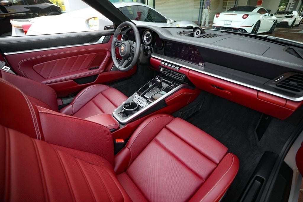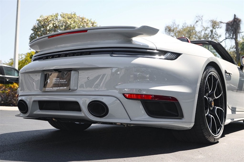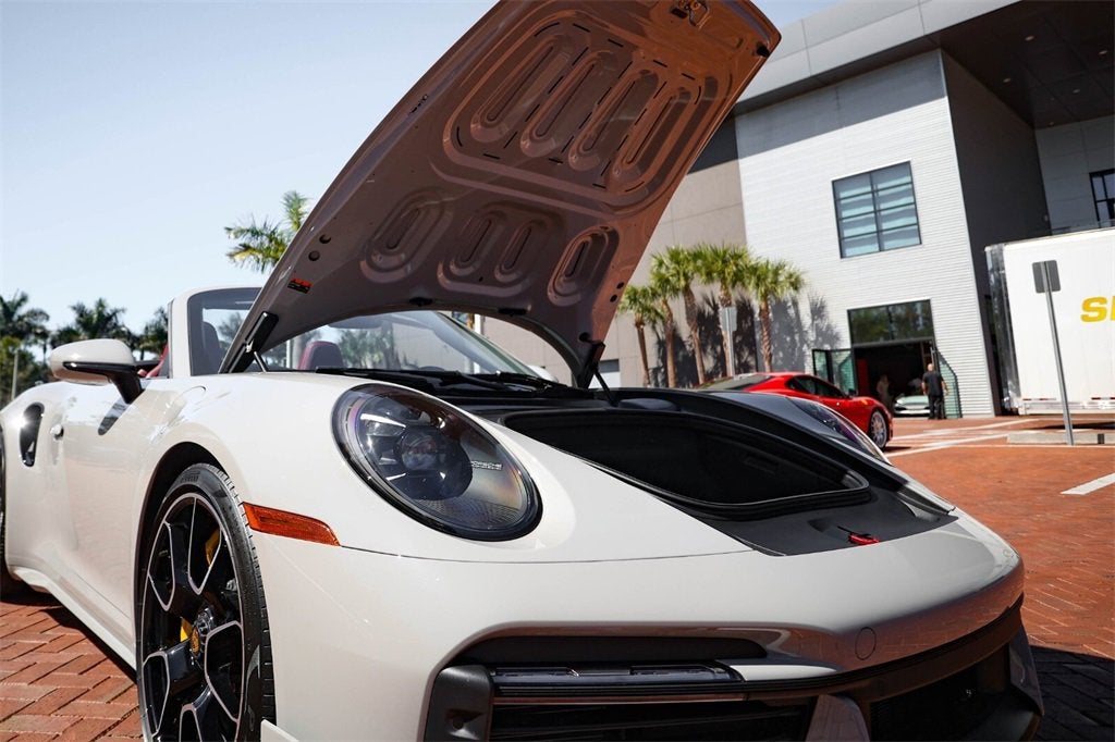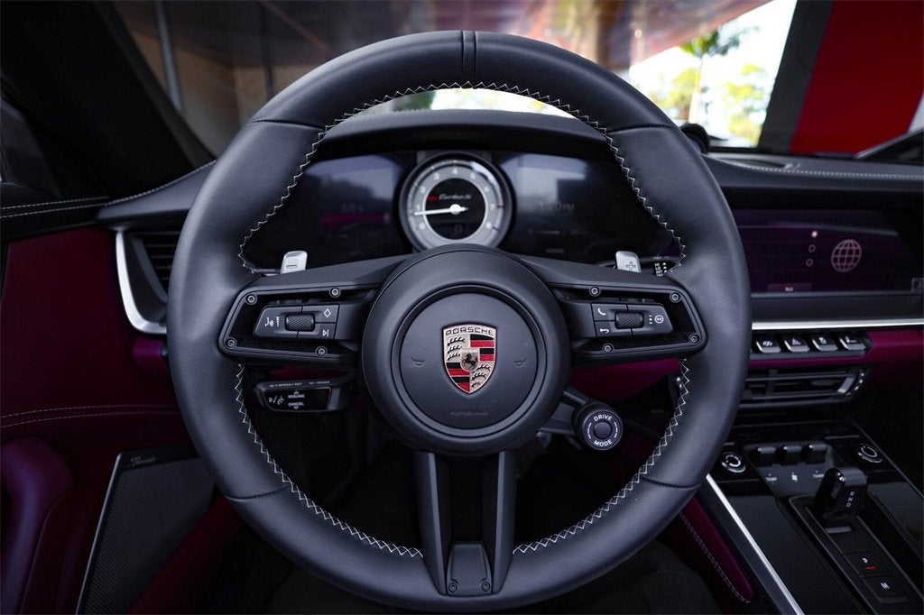 Ferrari of Naples is proud to present this exceptionally equipped 2025 Porsche 911 Turbo S Cabriolet, finished in Chalk over a luxurious Black and Bordeaux Red leather interior with a Black convertible roof. With just 4,612 miles, this beautifully specified example combines Porsches ultimate open-top performance with an extensive list of highly desirable factory options. With an original MSRP of $285,265, this Turbo S Cabriolet features the SportDesign Package, Burmester High-End Audio, Front Axle Lift, PASM Sport Suspension, and an extensive deviated stitching interior package, making it a truly exceptional and highly customized example. 911 Turbo SportDesign Package 20"/21" 911 Turbo S Exclusive Design Wheels Wheels Painted in High Gloss Black Rear Side Air Intakes in High Gloss Black Exterior Mirror Bases in High Gloss Black Rear Lid Grille Vertical Slat Inlays in High Gloss Black Model Designation and PORSCHE Logo in High Gloss Black Exclusive Design Fuel Cap Exclusive Design Taillights LED-Matrix Design Headlights in Black with PDLS+ Sport Exhaust System with Black Tailpipes Under Door Puddle Light Projectors Leather Interior in Black / Bordeaux Red Deviated Stitching Interior Package in Chalk Dashboard with Deviated Stitching Door Panels with Deviated Stitching Center Console Lid with Deviated Stitching Knee Pads with Deviated Stitching Rear Side Panels with Deviated Stitching Seat Belts in Chalk Heated GT Sport Steering Wheel in Leather Steering Column Casing in Leather Passenger Cupholder Trim in Leather Storage Package Burmester High-End Surround Sound System Lane Change Assist Ambient Lighting Ionizer Air Purification System Ventilated Front Seats Front Axle Lift System Power Steering Plus At Ferrari of Naples, we offer an exclusive selection of luxury and performance vehicles, backed by unparalleled customer service. Our team is dedicated to providing a seamless and personalized buying experience, ensuring that each vehicle meets the highest standards of quality and performance. Phone: (239) 256-1400 Email: smora@newcountry.com Address: 11291 Tamiami Trail N, Naples, FL 34110 Please call or email today to schedule your private viewing or request a personalized video tour of this exceptional 2025 Porsche 911 Turbo S Cabriolet.