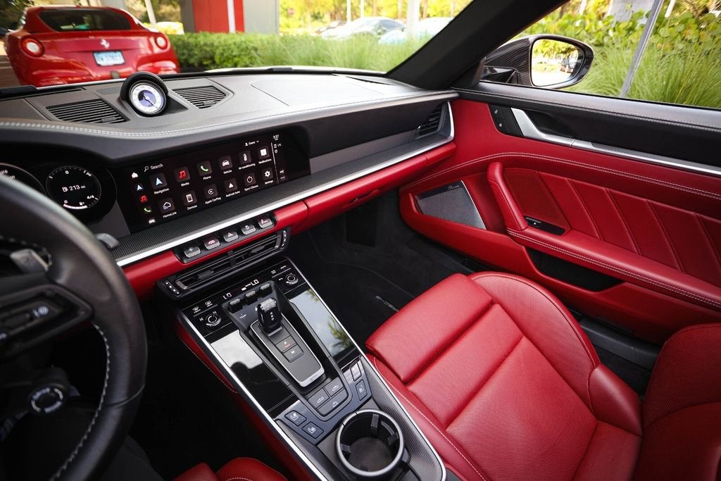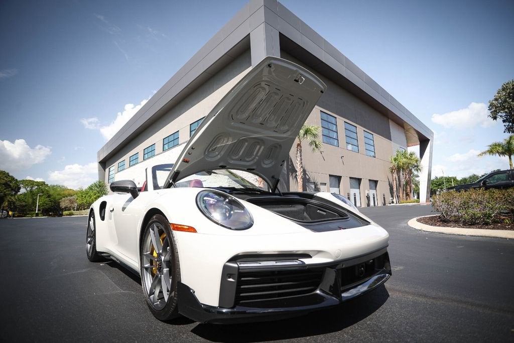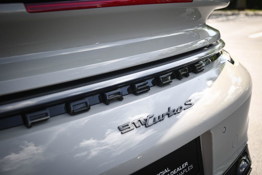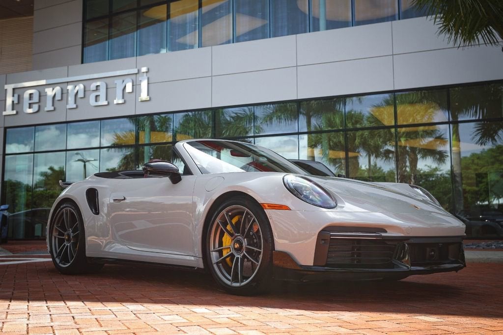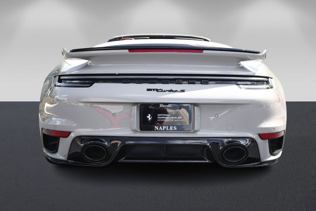 Ferrari of Naples is proud to present this 2023 Porsche 911 Turbo S Cabriolet, finished in elegant Chalk over a rich Black/Bordeaux Red leather interior, paired with a Black convertible top. With just 4,806 miles, this example is in exceptional condition and highly optioned from the factory. Equipped with the desirable Sport Package, Front Axle Lift, Burmester Audio, and Deviated Stitching Package, this Turbo S Cabriolet delivers the perfect combination of performance, luxury, and open-top driving excitement. With an original MSRP of $271,980, this is a beautifully configured and extremely well-equipped example. Factory Options & Equipment Chalk Exterior Leather Interior in Black / Bordeaux Red Sport Package Exterior Under Door Puddle Light Projectors PASM Sport Suspension (Lowered 10mm) Front Axle Lift System Sport Exhaust System with Black Tailpipes Power Steering Plus Ambient Lighting Ventilated Front Seats Heated GT Sport Steering Wheel Central Tachometer in White Sport Chrono Stopwatch Dial in White Deletion of Turbo S Logo on Headrests Burmester High-End Surround Sound System Deviated Stitching Interior Package (Chalk) Dashboard, Door Panels, Console, Knee Pads, Rear Panels LED-Matrix Design Headlights in Black (PDLS+) Remote ParkAssist with Lane Change Assist & 3D Surround View Lane Keep Assist with Traffic Sign Recognition Adaptive Cruise Control (ACC) At Ferrari of Naples, we offer an exclusive selection of luxury and performance vehicles, backed by unparalleled customer service. Our team is dedicated to providing a seamless and personalized buying experience, ensuring that each vehicle meets the highest standards of quality and performance. Phone: (239) 256-1400 Email: smora@newcountry.com Address: 11291 Tamiami Trail N, Naples, FL 34110 Please call or email today to schedule your private viewing or request a personalized video tour of this exceptional 2023 Porsche 911 Turbo S Cabriolet.