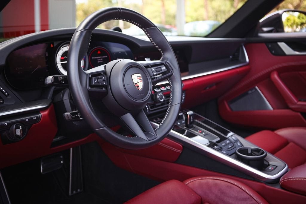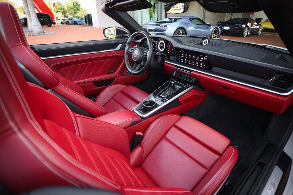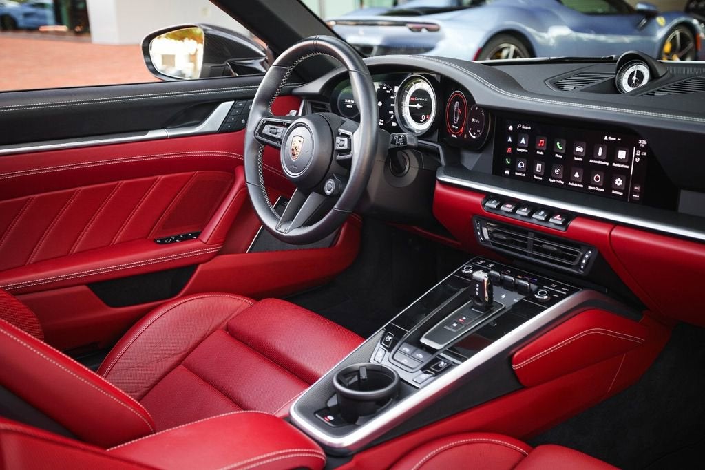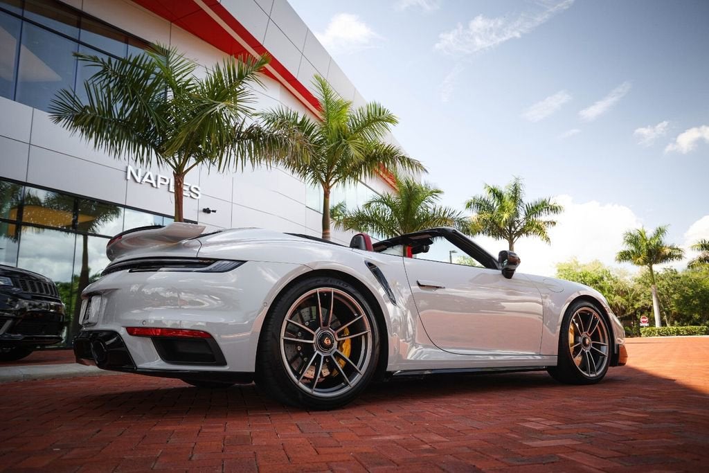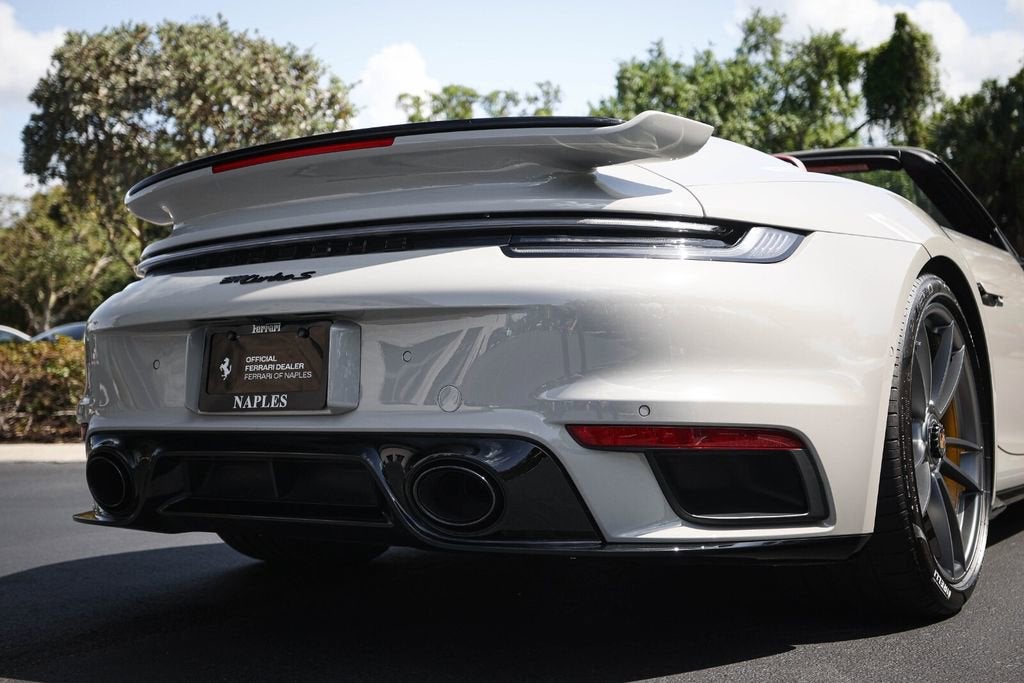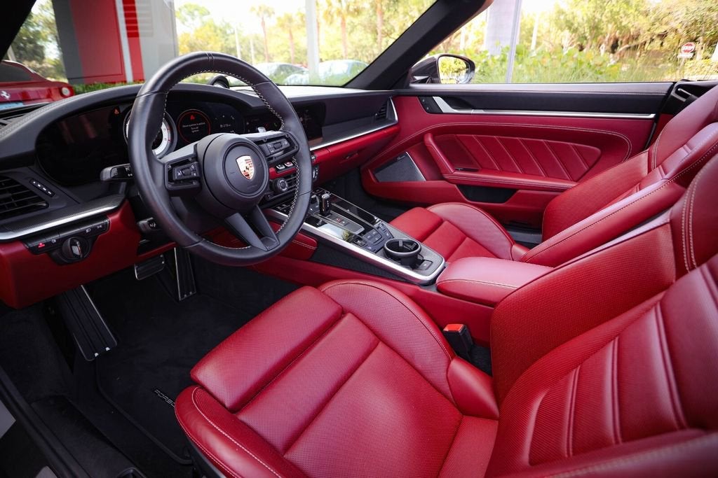 Ferrari of Naples is proud to present this 2023 Porsche 911 Turbo S Cabriolet, finished in elegant Chalk over a rich Black/Bordeaux Red leather interior, paired with a Black convertible top. With just 4,806 miles, this example is in exceptional condition and highly optioned from the factory. Equipped with the desirable Sport Package, Front Axle Lift, Burmester Audio, and Deviated Stitching Package, this Turbo S Cabriolet delivers the perfect combination of performance, luxury, and open-top driving excitement. With an original MSRP of $271,980, this is a beautifully configured and extremely well-equipped example. Factory Options & Equipment Chalk Exterior Leather Interior in Black / Bordeaux Red Sport Package Exterior Under Door Puddle Light Projectors PASM Sport Suspension (Lowered 10mm) Front Axle Lift System Sport Exhaust System with Black Tailpipes Power Steering Plus Ambient Lighting Ventilated Front Seats Heated GT Sport Steering Wheel Central Tachometer in White Sport Chrono Stopwatch Dial in White Deletion of Turbo S Logo on Headrests Burmester High-End Surround Sound System Deviated Stitching Interior Package (Chalk) Dashboard, Door Panels, Console, Knee Pads, Rear Panels LED-Matrix Design Headlights in Black (PDLS+) Remote ParkAssist with Lane Change Assist & 3D Surround View Lane Keep Assist with Traffic Sign Recognition Adaptive Cruise Control (ACC) At Ferrari of Naples, we offer an exclusive selection of luxury and performance vehicles, backed by unparalleled customer service. Our team is dedicated to providing a seamless and personalized buying experience, ensuring that each vehicle meets the highest standards of quality and performance. Phone: (239) 256-1400 Email: smora@newcountry.com Address: 11291 Tamiami Trail N, Naples, FL 34110 Please call or email today to schedule your private viewing or request a personalized video tour of this exceptional 2023 Porsche 911 Turbo S Cabriolet.