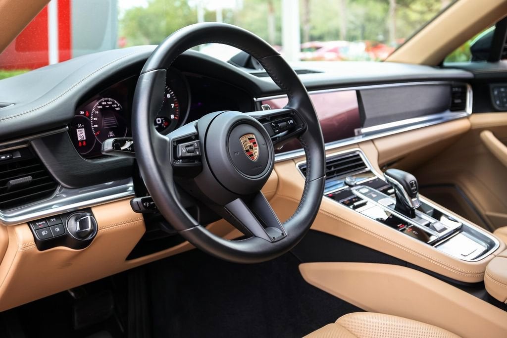 Ferrari of Naples is proud to present this elegantly specified 2023 Porsche Panamera Platinum Edition, finished in stunning Aventurine Green Metallic over a refined Black/Luxor Beige leather interior. With just 6,793 miles and one owner from new, this Panamera represents a perfect blend of luxury, performance, and cutting-edge technology. The Platinum Edition enhances the Panamera with exclusive design elements and premium standard equipment, while this example is further equipped with desirable options including Rear Axle Steering, Porsche InnoDrive, Massage Seats, and Surround View. With an original MSRP of $117,260, this is a beautifully optioned luxury sport sedan. Factory Options & Equipment Aventurine Green Metallic Exterior Leather Interior in Black / Luxor Beige Assistance Package Porsche InnoDrive (Adaptive Cruise Control + Active Lane Keep) Traffic Jam Assist Head-Up Display Surround View Camera System Rear Axle Steering incl. Power Steering Plus Massage Front Seats with Ventilation Heated GT Sport Steering Wheel Power Rear Side Window Sunblinds USB-C Interface (Rear) Preparation for Tailgate Foil At Ferrari of Naples, we offer an exclusive selection of luxury and performance vehicles, backed by unparalleled customer service. Our team is dedicated to providing a seamless and personalized buying experience, ensuring that each vehicle meets the highest standards of quality and performance. Phone: (239) 256-1400 Email: smora@newcountry.com Address: 11291 Tamiami Trail N, Naples, FL 34110 Please call or email today to schedule your private viewing or request a personalized video tour of this exceptional 2023 Porsche Panamera Platinum Edition.