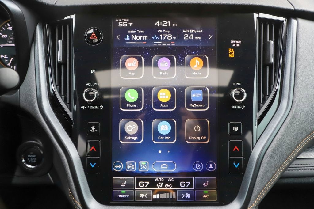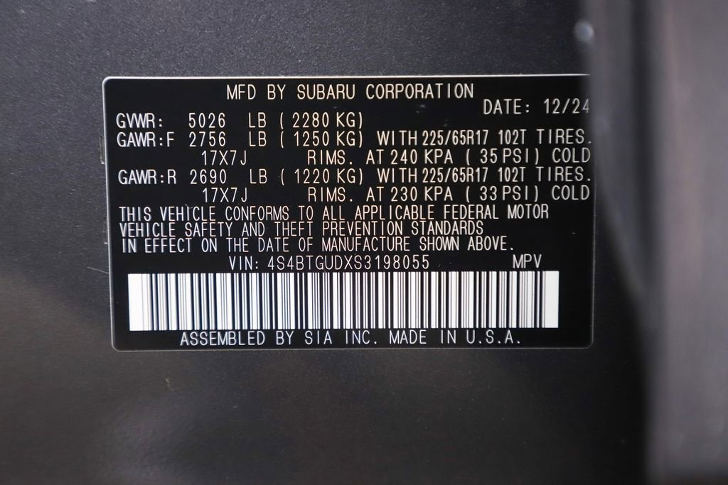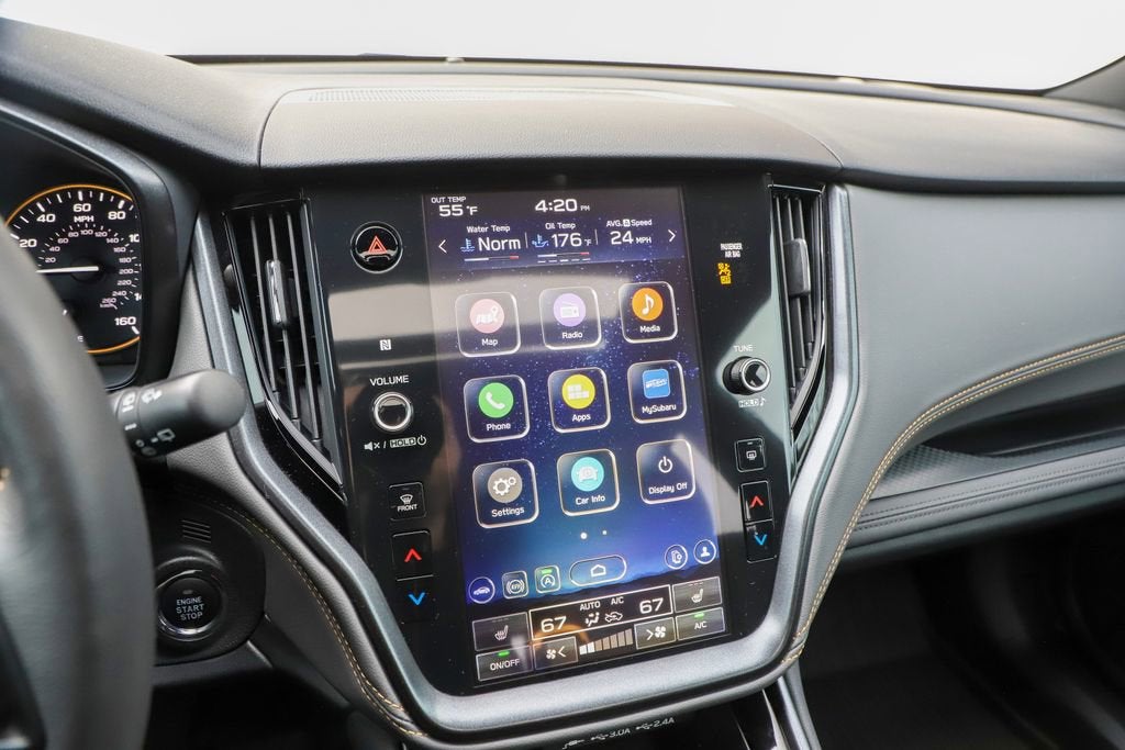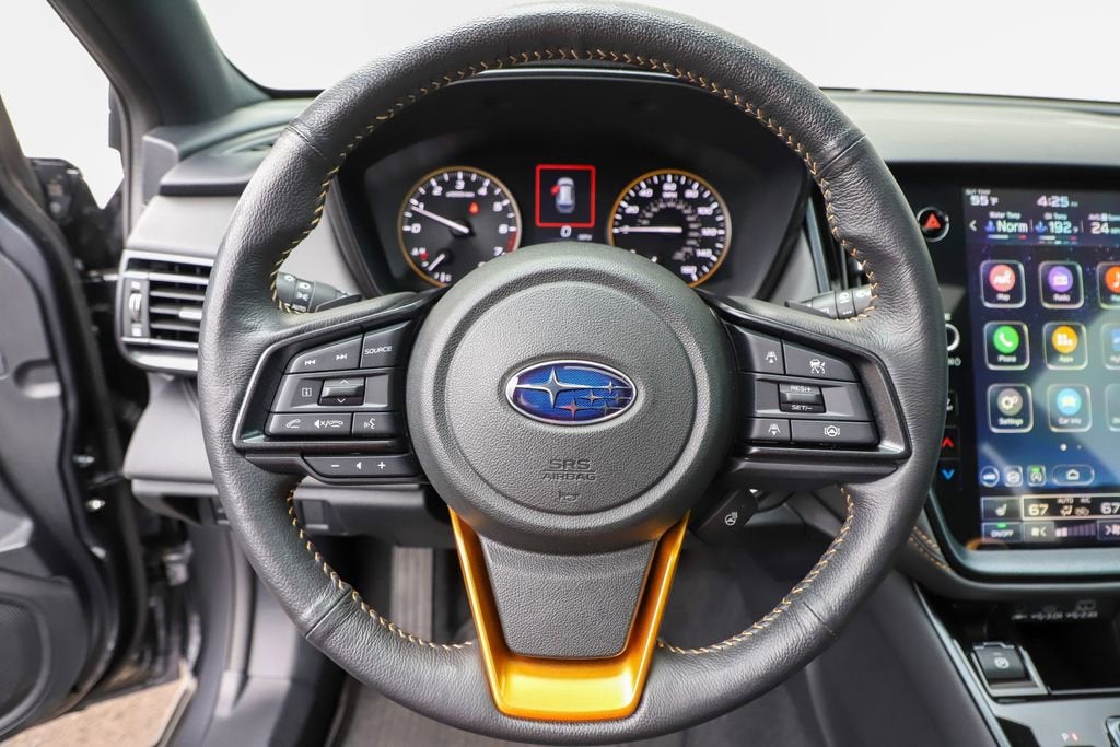 - - Reverse Automatic Braking (RAB) System - Power Moonroof - Radio: Subaru 11.6" Multimedia System with Navigation - Auto-Dimming Exterior Mirror with Approach Light - Splash Guards - Apple CarPlay & Android Auto - LED Upgrade - Rear Seat Back Protector - Wireless Charger - Heated Front Bucket Seats - StarTex-Trimmed Upholstery - Cargo Sidewall Protector - 17" x 7J Matte Black Aluminum-Alloy Wheels Powered by a robust 2.4L DOHC engine and Subaru's renowned Symmetrical All-Wheel Drive system, the Outback Wilderness delivers exceptional on- and off-road performance. With an EPA-estimated 21 city / 26 highway MPG, this SUV strikes the perfect balance between capability and efficiency. Designed to tackle the most challenging terrains, the Outback Wilderness features a rugged suspension system, increased ground clearance, and a host of advanced safety technologies. Whether you're navigating winding mountain roads or venturing off the beaten path, this Subaru is engineered to provide a confident and secure driving experience. Beyond its impressive capabilities, the Outback Wilderness boasts a refined and versatile interior. Luxurious touches, such as the power moonroof, heated front seats, and premium audio system, elevate the cabin's comfort and convenience. The spacious cargo area and split-folding rear seats offer ample room for all your gear, making this SUV the perfect companion for your next adventure. Experience the perfect blend of capability, technology, and style with the 2025 Subaru Outback Wilderness. Visit our showroom today to take this remarkable vehicle for a test drive and discover the true meaning of adventure.